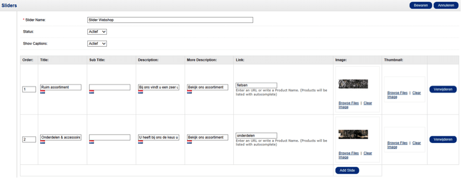 U kunt vervolgens deze afbeeldingen plaatsen in de foto slider van uw Crossretail webshop.